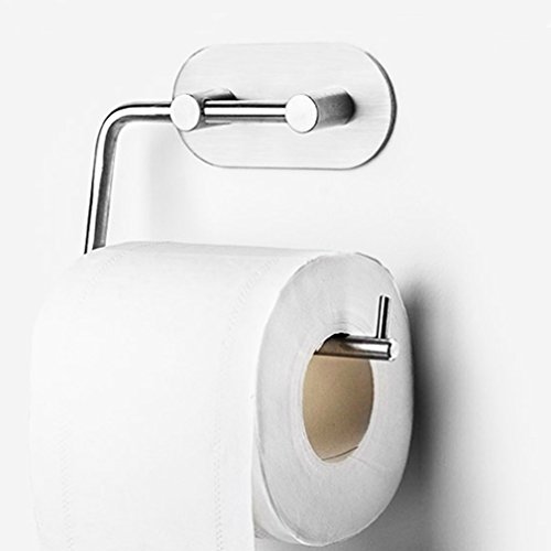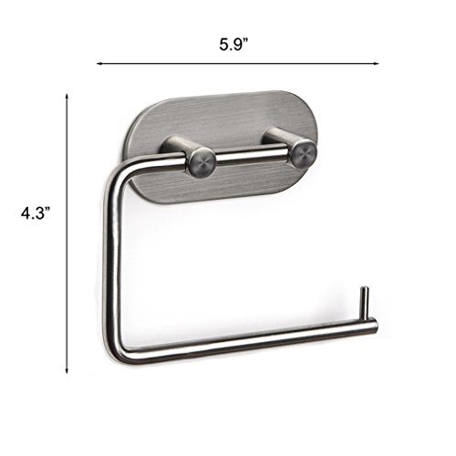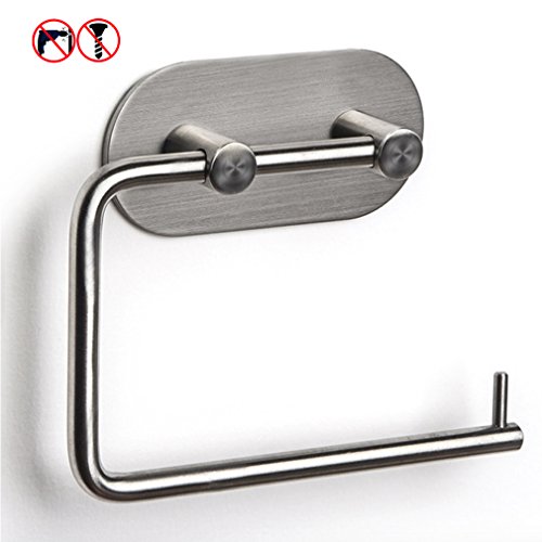 BESy Self Adhesive SUS 304 Stainless Steel Toilet Paper Holder, Drill Free with Glue Tissue Roll Hanger Wall Mounted , Heavy Duty, Waterproof, for Bathroom Kitchen Toilet, Round, Brushed Nickel