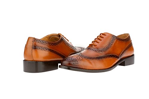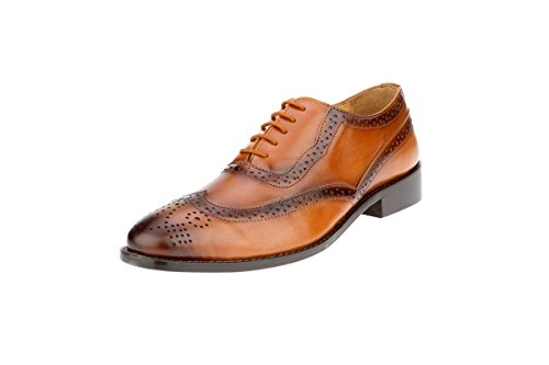 Liberty Men's Handmade Leather Classic Brogue Wing-Tip Lace Up Perforated Toe Dress Oxford Shoes