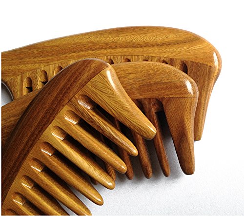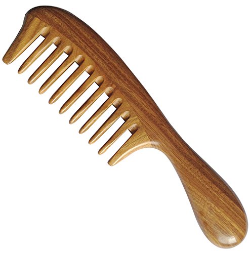 Handmade Natural Green Sandalwood Massage Comb Wide Tooth Wooden Comb with Handle 7.8"