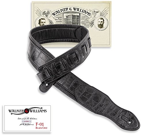 -. Title : Walker & Williams F-01 Classic Black Gator Padded Guitar Strap