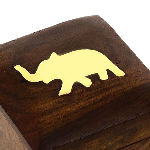 - Feature : LOVELY DESIGN Elephant jewelry box made out of premium sheesham hardwood with brass elephant inlay / VERSATILE SMALL WOOD BOX Measures 2 inches in length by 2 inches in width by 1.5 inches in height / SQUARE ELEPHANT JEWELRY HOLDER Perfect shape for jewelry boxes for necklaces; Prevents tangles / HANDMADE JEWELRY BOX Produced in Saharanpur, India, by skilled craftsmen / UNIQUE ANIMAL LOVER GIFTS Anyone who loves animals or elephants will treasure this jewelry box