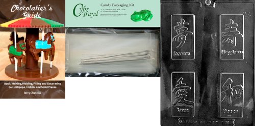 Cybrtrayd Asian Symbols Box Set International Chocolate Candy Mold with Chocolatier's Bundle, Includes 25 Cello Bags, 25 Silver Twist Ties and Chocolatier's Guide
