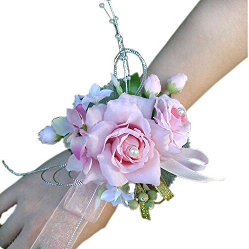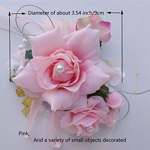Arlai Pack of 1, Bridal Wrist Corsage Wedding Party Prom Bridesmaid Flower Bracelet Pink