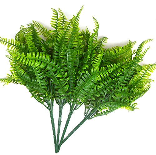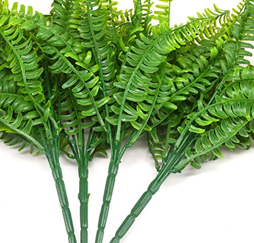 Lanldc 4 Pcs Boston Ferns Bush Plastic Artificial Grass Leaves Plant for Home Wedding Decor