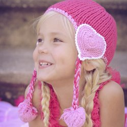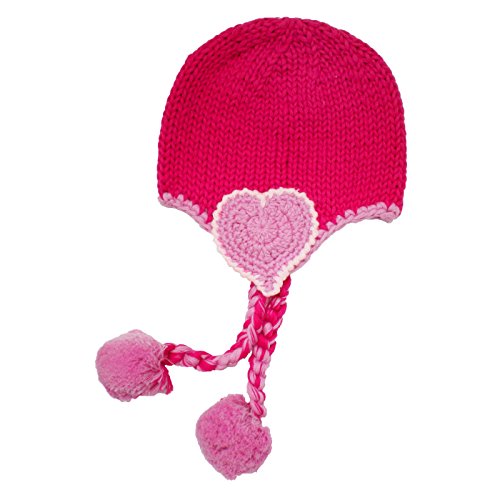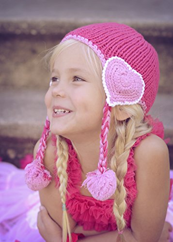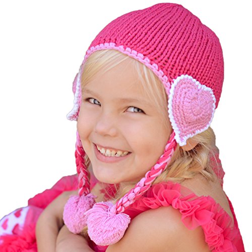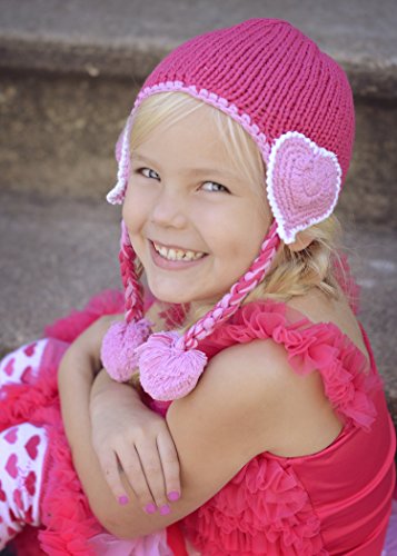 Product Description Little sweethearts look adorable in our pretty pink beanie hat with bright pink and pale pink heart shaped earflaps. Ties in shades of pink are finished with a fluffy pom pom for extra fun! Pair this up with our Beloved Legwarmers for your little love. 0