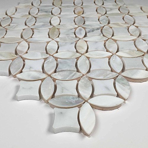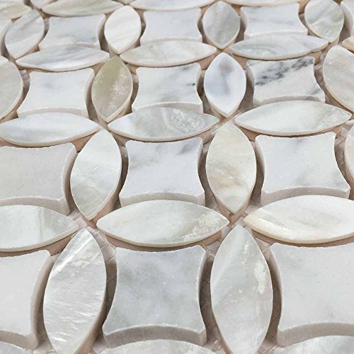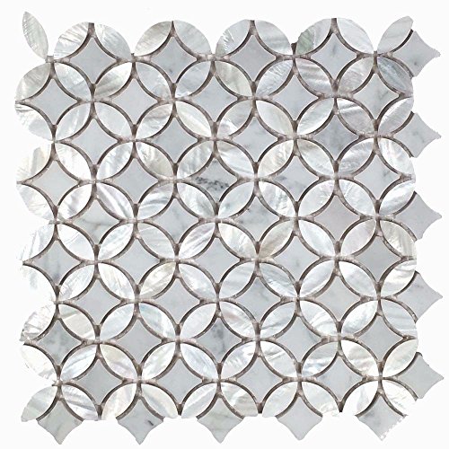 White Carrara with Mother of Pearl Flower Tiles On Mosaic Sheet for Kitchen Backsplashes, Bathroom Walls, Floor Tile, Spas, Pools (5 Sheets)