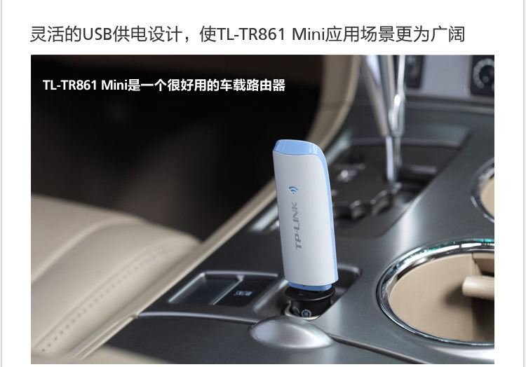 The TL-TR861 Mini into the car charger car iPad and intelligent mobile phonecan be through the Internet Wi-Fi.