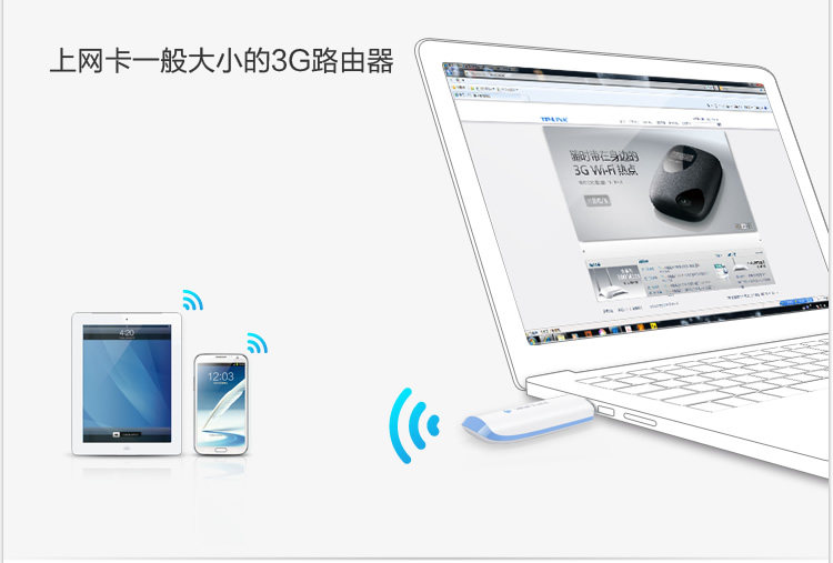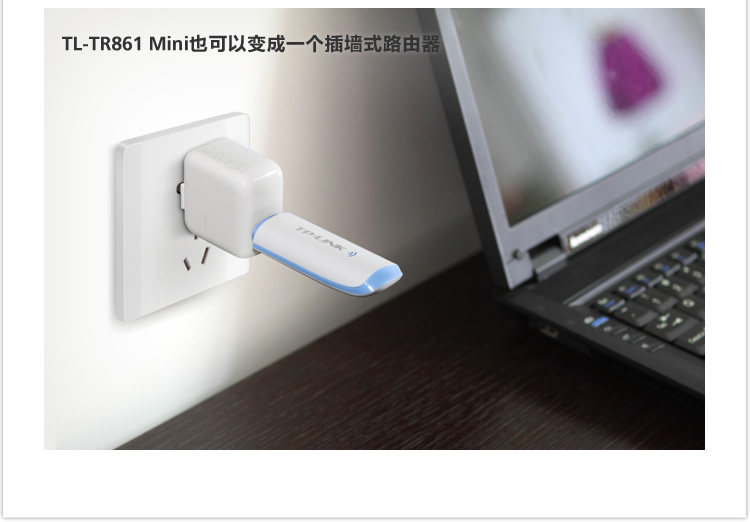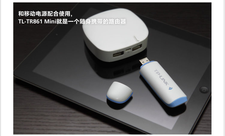 The TL-TR861 Mini is inserted in the intelligent mobile phone charger iPadUSB port, can let you in a wired network and Wi-Fi service provides no placeeasy 3G Internet