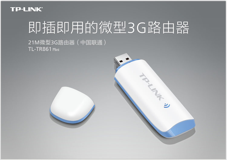 TL-TR861 Mini is a 3G router an 3G signal can be shared to others on the Internet, the unique design of Mini type mini and TL-TR861 the 3G share is more convenient only the TL-TR861 Mini inserted in the USB interface of the computer or other USB powered devices TL-TR861 Mini became a portable 3G Wi-Fi hotspot.