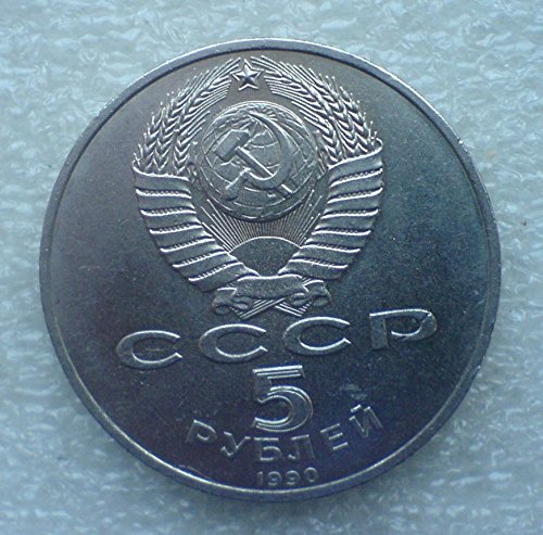 1990 RU 5 rubles. Assumption Uspenskiy Cathedral in Moscow USSR Soviet Union Coin 31mm About Uncirculated Detials