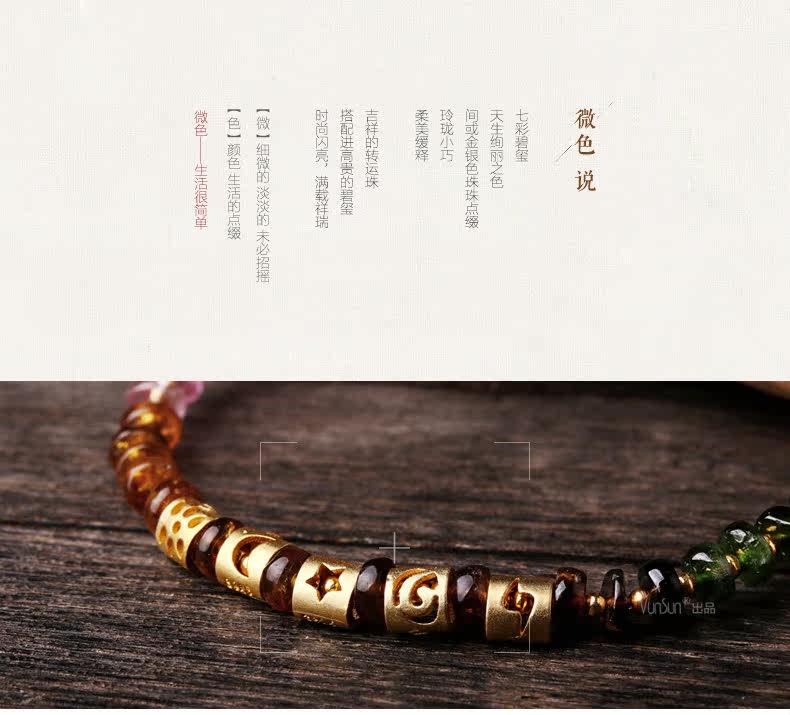 天然碧玺水晶手链女单圈彩色水晶手串 简约清新文艺 饰品