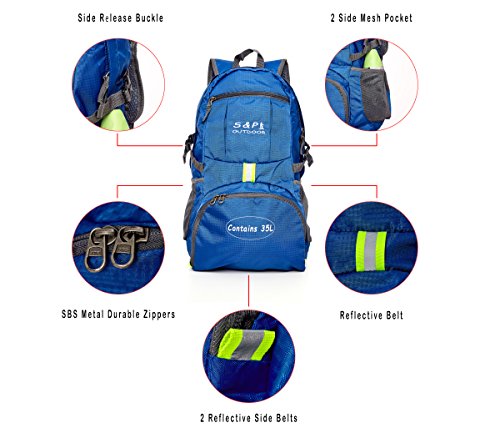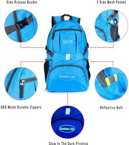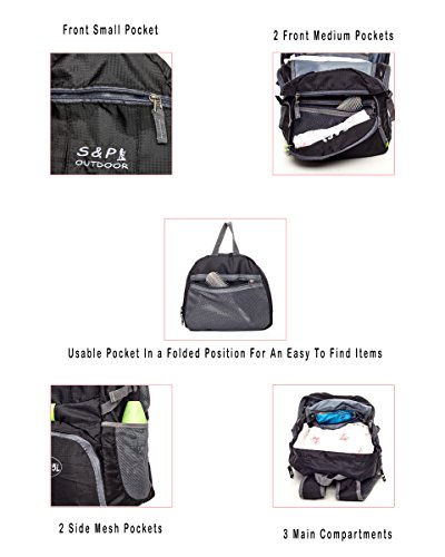 Studio : S P Outdoor Publisher : S P Outdoor Product Description Our story is about the S P founder which is an ex ARMY special operation special need backpack engineer. With his passion for perfection and simplicity in design, combined with specially developed materials and engineering technics, we hereby offering you, the state of the art durable and special packable/foldable packpack. DURABLE. This S P Backpack is made from SPECIFICALLY DEVELOPED, extra density, durable and water resistant nylon fabric that provides strength and long-lasting performance with minimal weight. STRESS POINTS. are reinforced with bar tacking for increased longevity. 2-WAY ABRASION RESISTANT SBS METALl ZIPPER. across ALL the backpack zippers. COMPACT. Folds into zippered front pocket that can fit anywhere. Unfolds from pocket to backpack. Must have on every trip and a great gift for everyone. LIGHTWEIGHT(0.7 Pounds) and ROOMY(35 Litres). A true space saver. Avoid overweight charges, simply unfold from your luggage and use it as a carry on for your excess baggage. MULTI COMPARTMENTS and KEEP THINGS ORGANIZED. This backpack features one main zipped compartment, two zipped front pockets and two side pockets (total 8 pockets). MAIN COMPARTMENT provide enough room no matter if it's a day trip or a week long journey. Two side pockets are good for holding water bottles and umbrellas. COMFORTABLE. Breathable thick mesh shoulder straps with plentiful sponge padding for shoulder protection. Shoulder straps are adjustable. Chest strap buckle help you lock your backpack in place securely. WHISTLE. At the front shoulder straps, just in case the group leader, teacher, father/mom, biker or any other person need to use that voice warning. 0