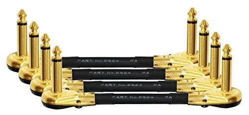 4 Units - Mogami 2524 - 4 Inch - Guitar Bass Effects Instrument, Patch Cable with Premium Gold Plated ¼ Inch (6.35mm) Low-Profile, Right Angled Pancake type Connectors