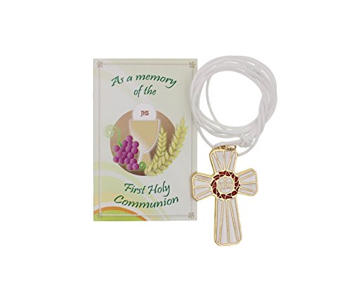 -. Binding : Jewelry -. Brand : Religious Gifts -. Color : White -. Department : unisex-child -. Feature : First Communion Enameled Metal "JHS" Cross Pendant Necklace on Cord / ApproP.R.Iate for Boys and Girls / Includes First Communion Card as Pictured / Cord Measures Approximately 28-inches. Adjust Knot to Adjust Length of Cord. / Packaged in a White Organza Bag -. Label : Made in Italy -. Manufacturer : Made in Italy -. ProductGroup : Jewelry -. ProductTypeName : FASHIONNECKLACEBRACELETANKLET -. Publisher : Made in Italy -. Studio : Made in Italy -. Title : 1.6-inch First Communion Enameled Metal "JHS" Cross Pendant Necklace on Cord
