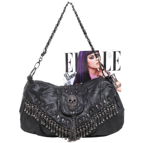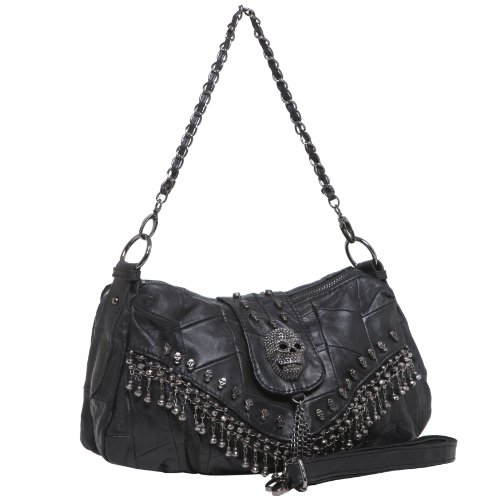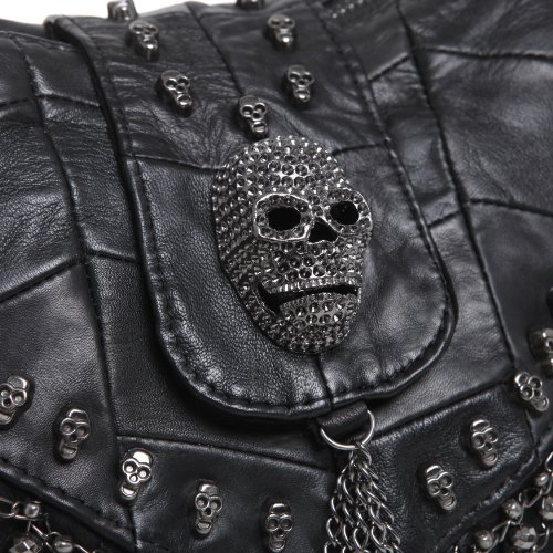 - Title : MG Collection Parkin 3D Skull Studded Fringe Beads Lambskin Leather Purse, Black, One Size