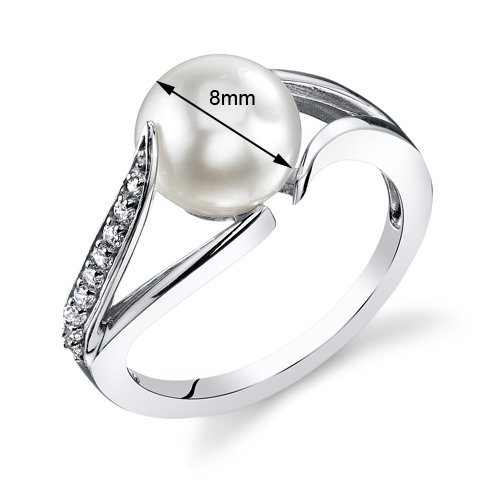 -. Title : Simply Elegant 8.0mm Freshwater Cultured White Pearl Ring in Sterling Silver