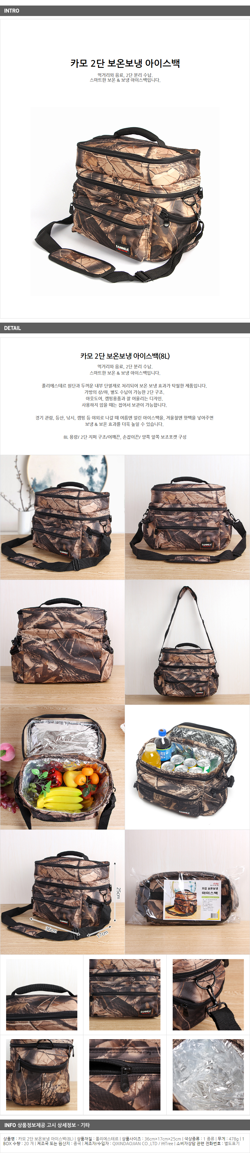 Two-stage heat-insulated ice bag 8L removable camo