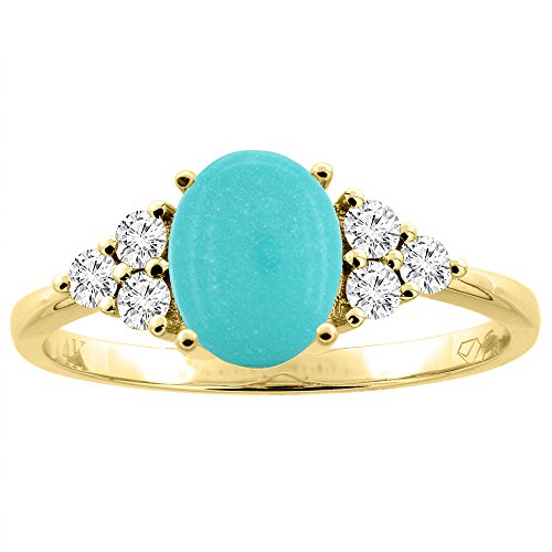 -. Title : 14K Gold Natural Turquoise Ring Oval 8x6 mm Diamond Accents, sizes 5 - 10