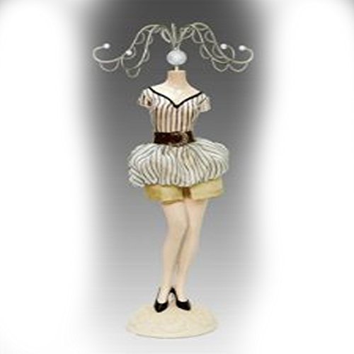 -. Feature : Display your favorite jewelry on this sweet dress form jewelry stand. The mannequin is made of poly resin and dressed in real fabric / not painted on. Easy assembly / no tools required. 10"H Gift boxed.