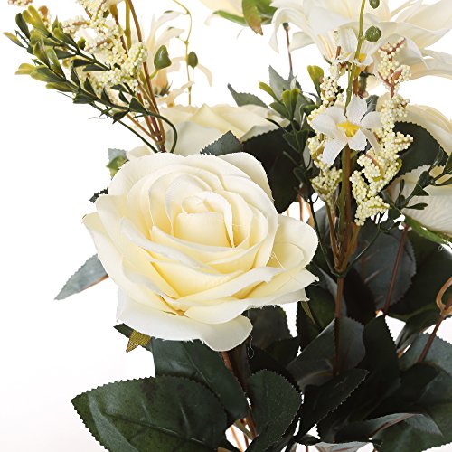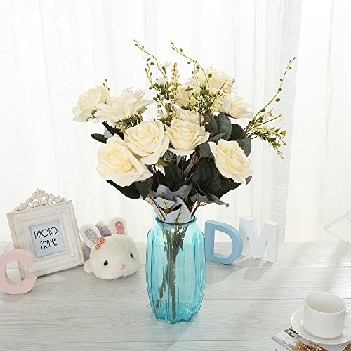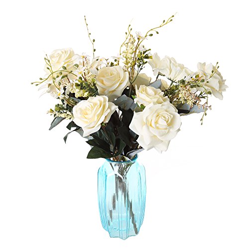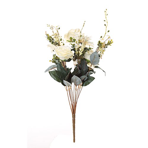 Greentime 11 Heads Fake Rose Silk Flowers Bouquet 19.7" Artificial Flower Bridal Hydrangea Bunch for Weeding Office Party Floral Decor DIY, (White)