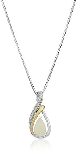 S&G Sterling Silver and 14k Yellow Gold Opal with Diamond Accent Pendant Necklace, 18"