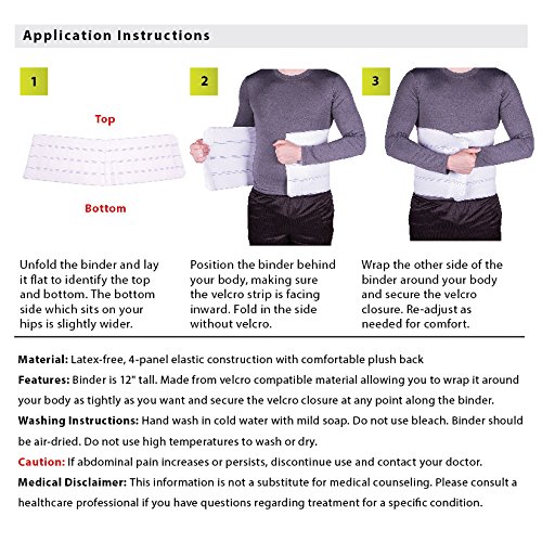 -. Feature : Made of lightweight material and lined with comfortable plush elastic so you can wear it under or over your clothes. / Promotes blood and oxygen flow to speed up the healing process. Can help with muscle strain, weak abdominal muscles, obesity-related discomfort, back pain, bladder problems, post surgery (liposuction, Cesarean birth, etc.) & can be used as a hernia binder. / Designed to add support and compression to the abdomen and lower back to reduce swelling and pain. / Constructed of four panels that allow the binder to conform to any body shape comfortably while maximizing support. / Available in sizes XL-4XL, fitting circumference of the widest portion of abdomen up to 96".