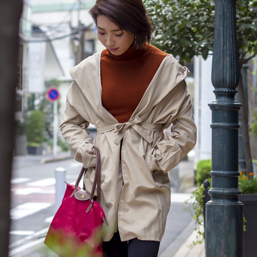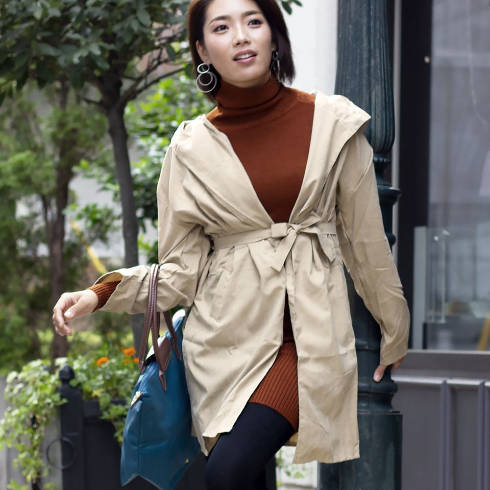 個性的で大人っぽさが魅力なフード付きウエストマークトレンチコート