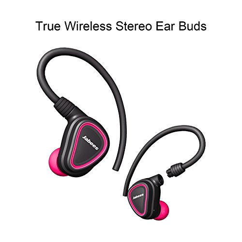 -. Title : True Wireless Earbuds With Microphone Shield By Jabees, Detachable Flex-wire Earhooks Fitness Earphones with Touchpad, Sweat Proof, Wireless Bluetooth V4.1 Stereo Headphones, On-The-Go Charging Case