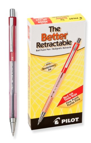 -. Binding : Office Product -. Brand : Pilot -. Color : Black -. Feature : Stainless steel point and metal clip with / Ribbed finger grip for writing comfort / Fine point (0.7mm) for precise writing / Box of 12 pens with blue ink / Retractable and refillable - Better refill model #77211 sold separately -. Label : Pilot -. Manufacturer : Pilot -. MPN : PIL30001 -. NumberOfItems : 1 -. PartNumber : PIL30001 -. ProductGroup : Office Product -. ProductTypeName : WRITING_INSTRUMENT -. Publisher : Pilot -. Studio : Pilot -. Title : Pilot Better Ballpoint Retractable Pen, Fine