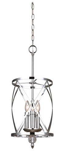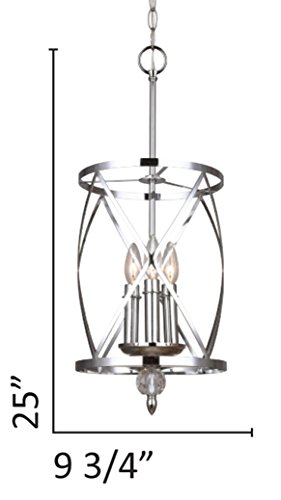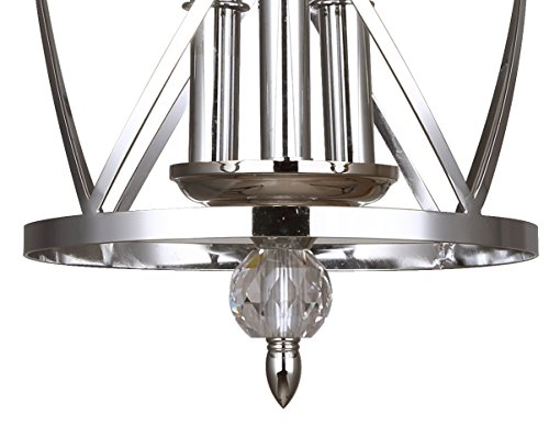 CANARM Style Vanessa ICH172B03CH10 3 Light Pendant -Features a spiraling, triangular geometric design of chrome bands around 3 candlelabra style lights. The addition of a crystal/chrome finial adds a touch of elegance to this airy, stylish pendant. Uses 3 60W C bulbs (Not included). Canarm has a long and successful history of supplying lighting and ceiling fans. They work diligently to create a comprehensive selection of styles and designs as well as maintaining high standards of product quality and value.Feature