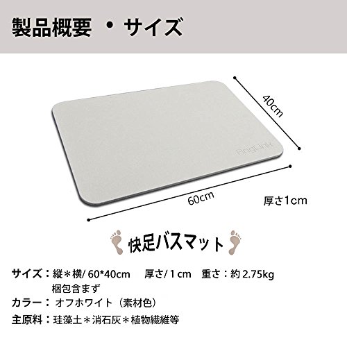 원본상품명: 珪藻土バスマット A品 AngLink 刻印 足拭きマット 風呂マット 消臭速乾防カビ (60*39cm)