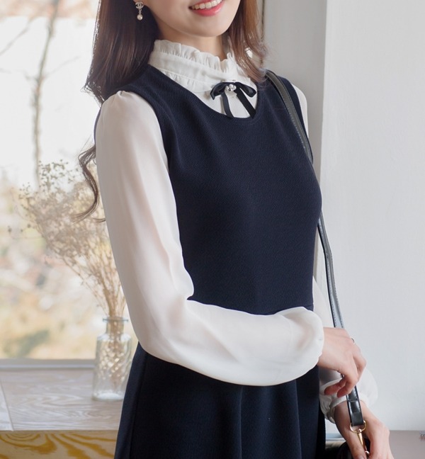 하이네크라인 리본 브로치 블라우스 소개해드립니다. 하이 프릴 네크라인과 리본 브로치 디테일로 걸리쉬한 분위기를 연출하실 수 있습니다 리본 브로치는 탈 부착이 가능하여 다양한 분위기를 연출하실 수 있습니다.