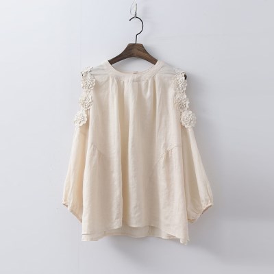 플라워장식과 팔라인이 살짝 오프되는 블라우스.