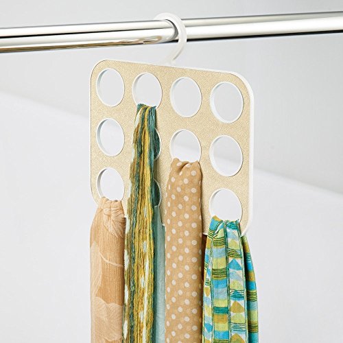 InterDesign Remy Scarf Hanger Closet Organizer, No Snag Storage For Scarves, Ties, Belts, Shawls, Pashminas, Accessories - 12 Loops, White/Gold