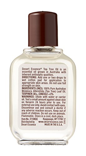 Desert Essence Australian Tea Tree Oil. Multi-uses for hair, body and even household. Deep cleans pores and helps relieve redness. This product is manufactured in united states.Feature