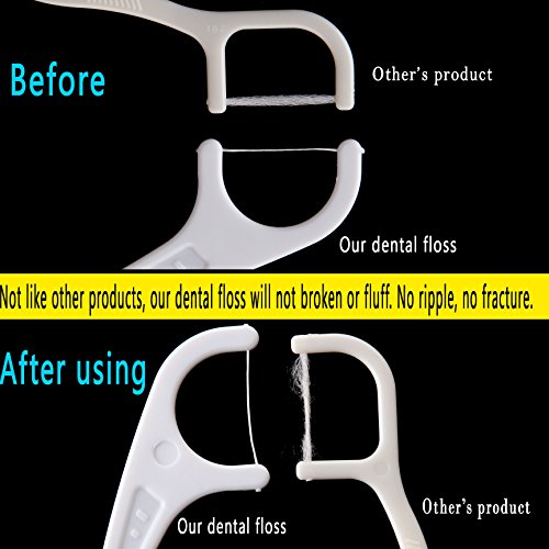 ★★★ ABOUT OUR MANUFACTURER: Our suppliers are recognized by the industry in good faith, strength and product quality. And products are exported all over the world. For many well-known floss brands provide product foundry services. At present, our manufacturer produces dental floss with an annual output of 500 million. ★★★ Easy to hold onto and maneuver in your mouth, nice and strong but doesn't get caught in your teeth easily, more sanitary than regular floss as well Since you started using these, you dentist will no longer has to dig and scratch at plaque. ★★★ Floss engineered not to shred, break, or snag. Comfort grip handle has a thumb pad and non-slip surface for better control. Angled neck allows for easy access to back of teeth. Recommended by dental professionals.