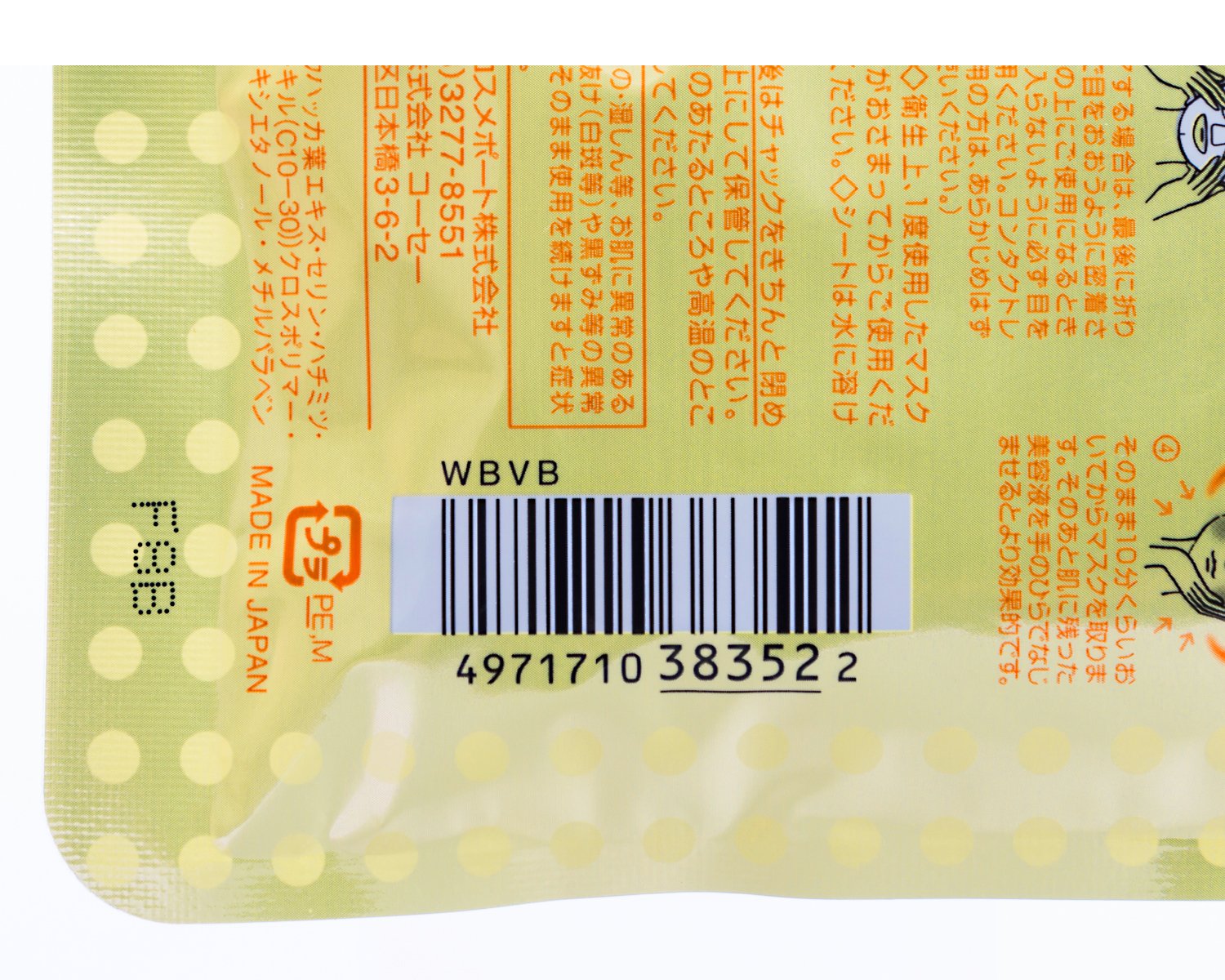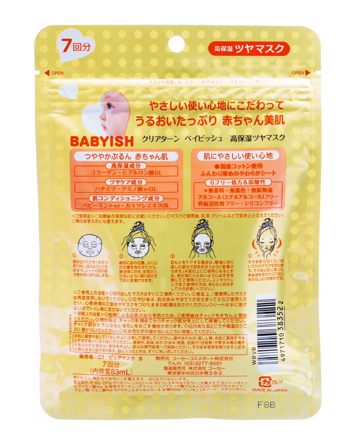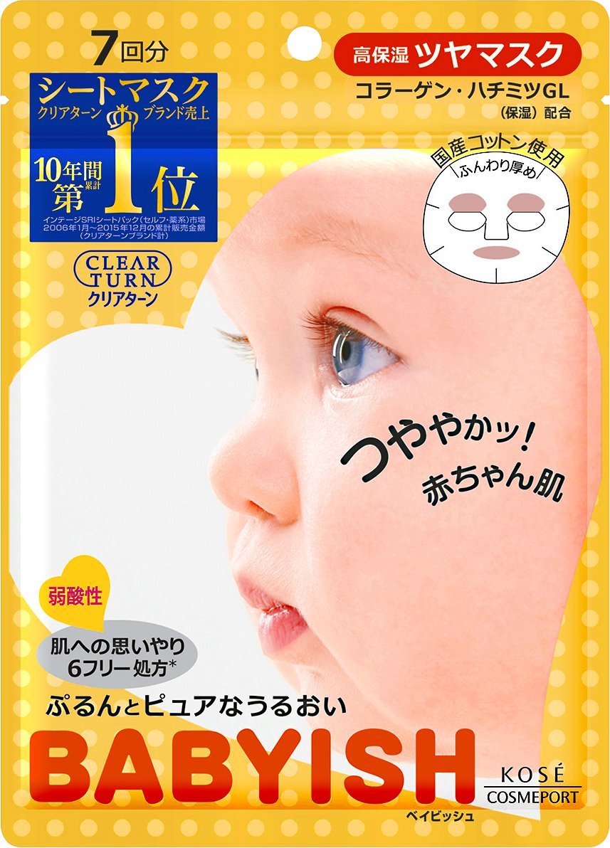 KOSE Clear Turn Babyish Moisture Shiny Mask Yellow 7 Count