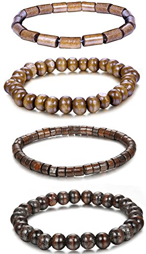 -. Title : ORAZIO[オラジオ] 【4点セット】木製 ブレスレット メンズ 重ね着け ブレスレット レディース 腕輪 念珠 ブレスレット ストレッチ 17cm~25cm