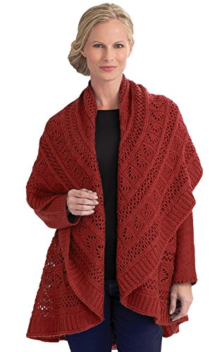 -. Feature : Amazingly Comfortable- This women's open weave cardigan is super comfy with an elegant design / Stylish and Versatile- The possibilities are endless with four ways to wear this convertible cardigan / High-Quality Construction- Crafted with a combination of 80 percent acrylic and 20 percent wool for unmatchable comfort / Flattering Design- Wear open for a flowing look or secure with the wooden pin (included) for a flattering waistline / One Size Fits All- Take the guesswork out of shopping with this convertible cardigan