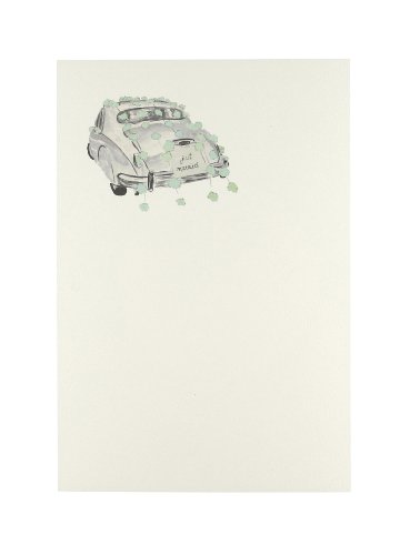 - Design features a decorated wedding car and plenty of room for your personal message