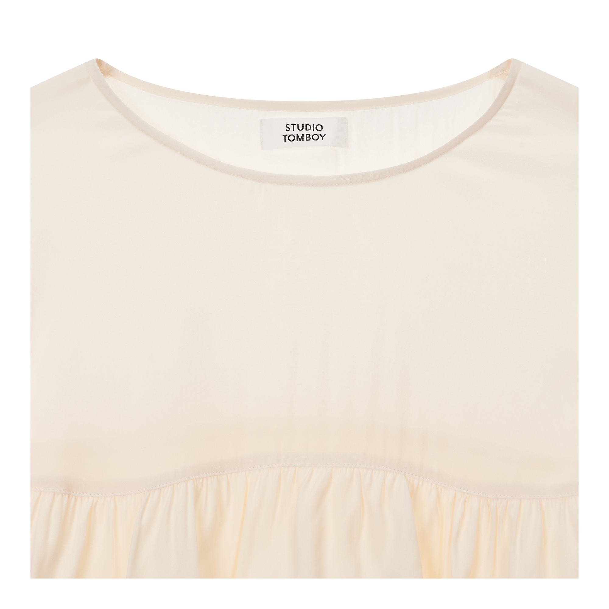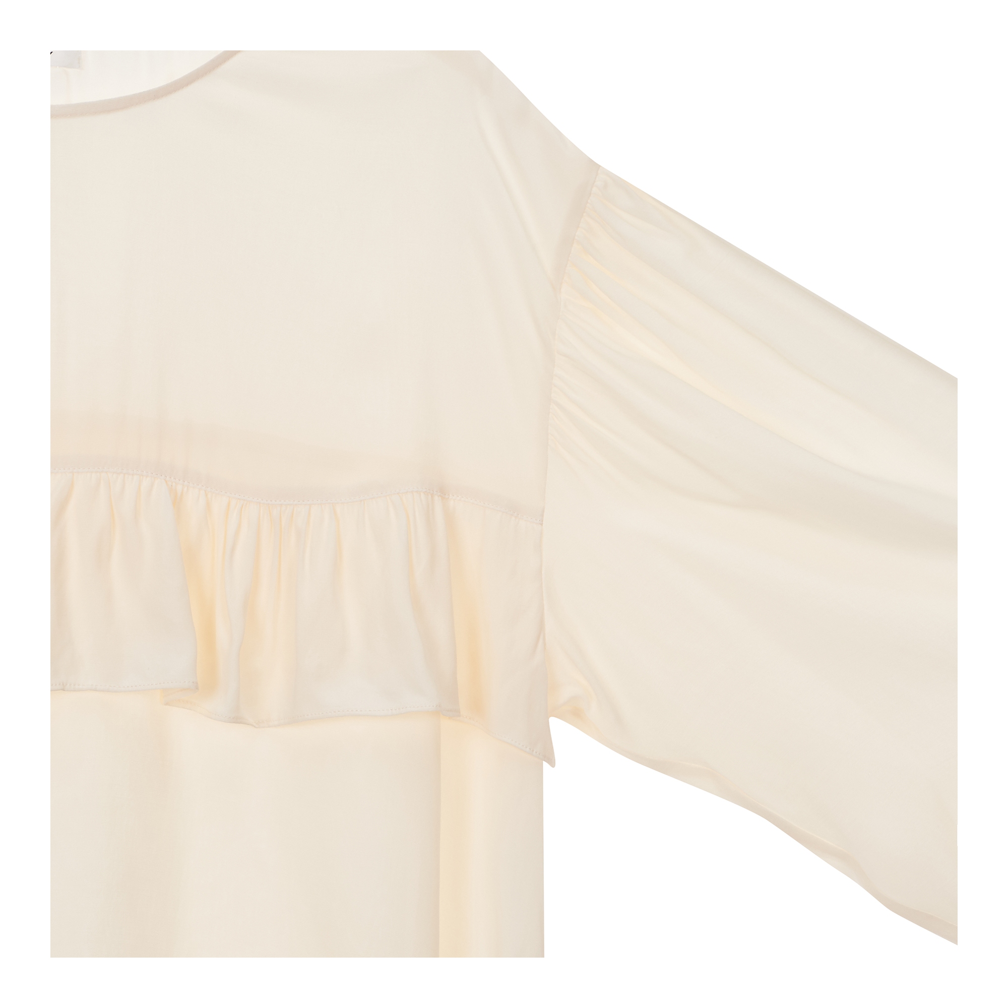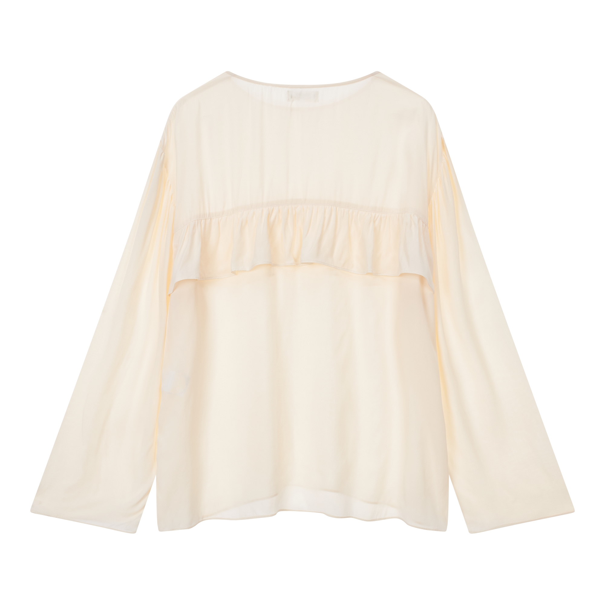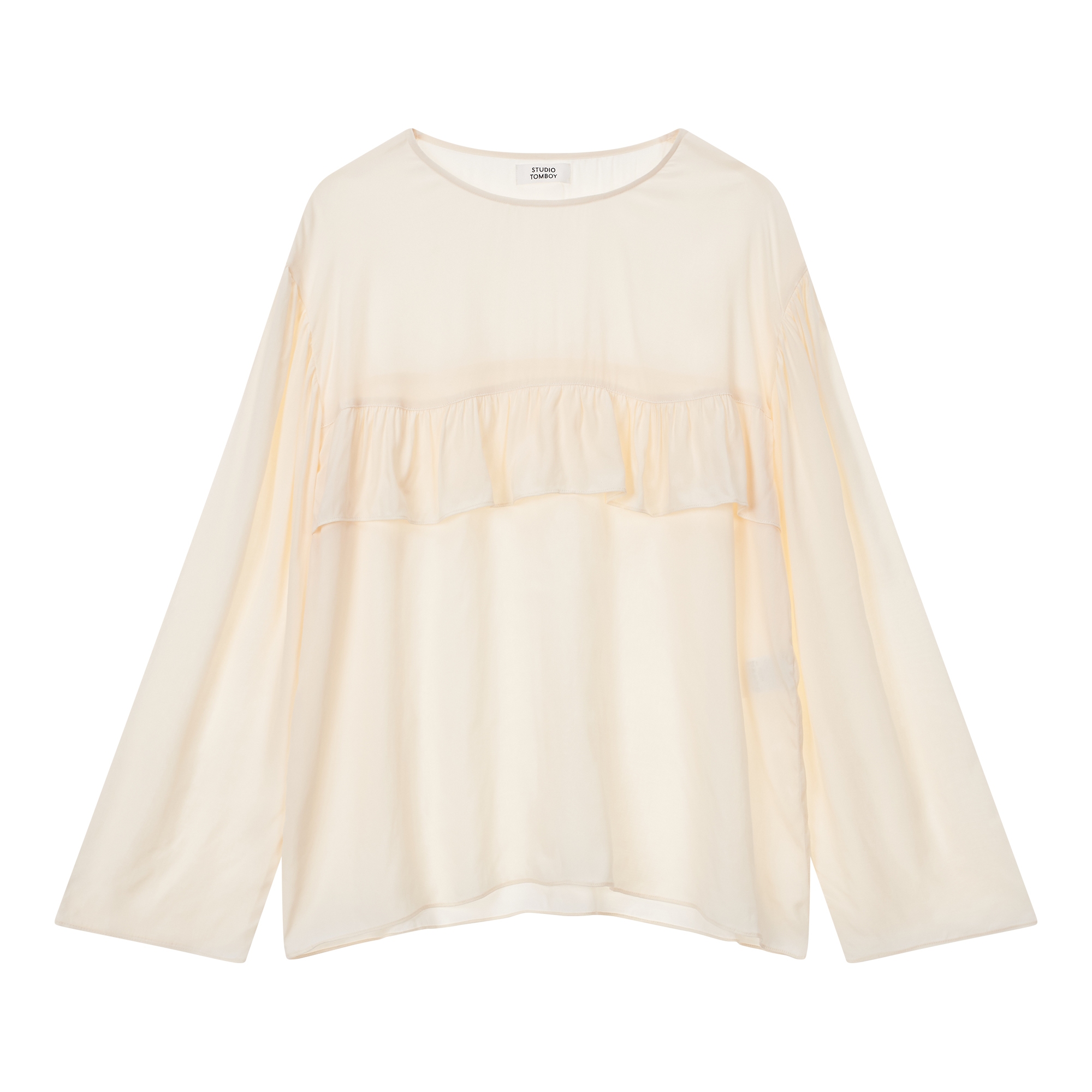 컬렉션 : 2018 Fall/Winter 디자인 포인트 : - 프릴 장식 디테일이 돋보이는 페미닌한 무드의 레이온 블라우스- 라운드넥 디테일과 베이직한 핏을 가진 롱 슬리브 디자인- 레이온 소재로 가벼운 착용감을 자랑하는 포인트 아이템 스타일링 추천 : 다양한 워싱의 스키니진 혹은 부츠컷 팬츠와 트렌디한 스타일링을 할 수 있음