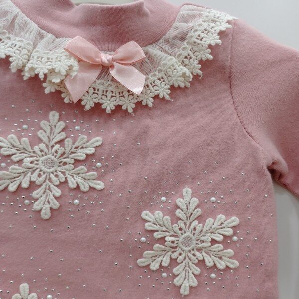 눈꽃모양자수와 큐빅이 화려한 반폴라티셔츠입니다.