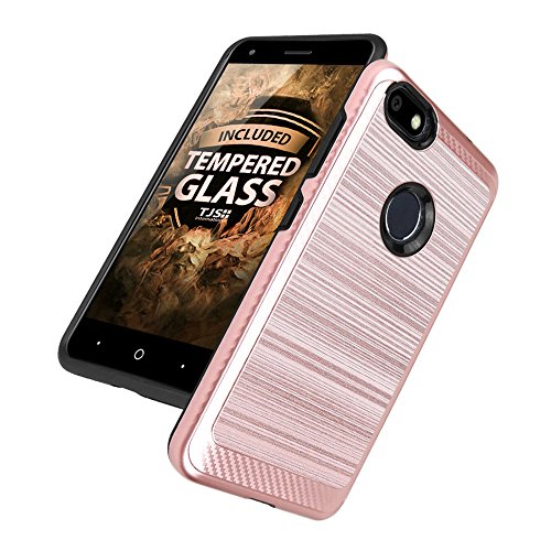 -. Title : ZTE Blade X Case, with TJS [Full Coverage Tempered Glass Screen Protector] Dual Layer Hybrid Shockproof Impact Resist Red Case Cover Metallic Brush Finish With Hard Inner Layer