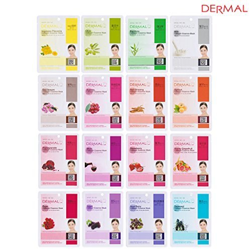 -. Title : Dermal Korea Collagen Essence Full Face Facial Mask Sheet, 16 Combo Pack by Dermal
