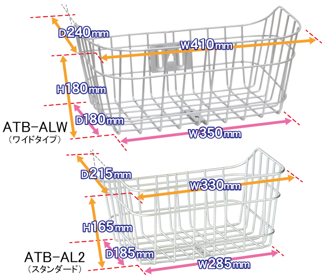 ・ATBフロントバスケットシリーズのアルミニウム製&ワイドタイプ