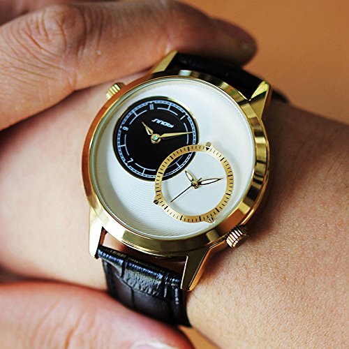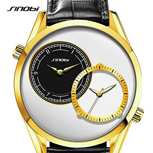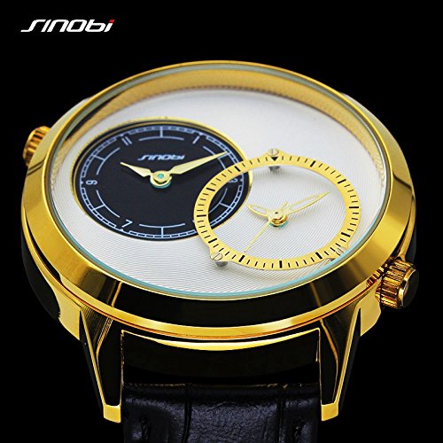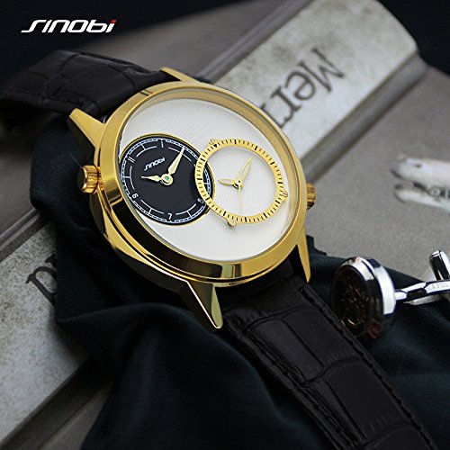 -. Title : SINOBI Genuine Leather Business Man Watches, Double Small Sub-dials Quartz Alloy Women Casual Wristwatch