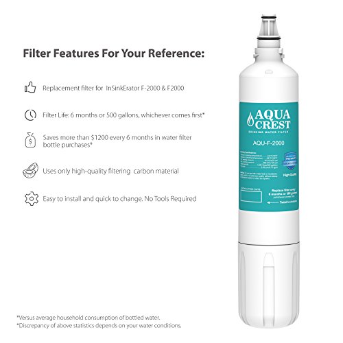 AQUACREST F-2000 Replacement for Insinkerator F-2000, F2000 Water Filter