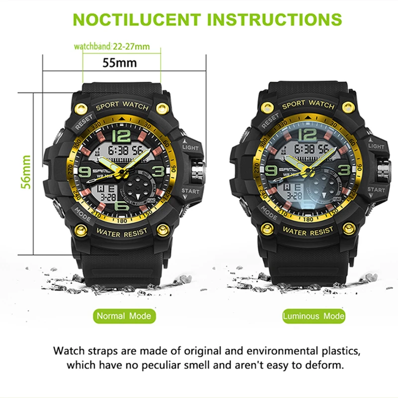 Feature:Water Resistant,LED display,Stop Watch,Complete Calendar,Back Light,Shock Resistant,Chronograph,Perpetual Calendar,Auto Date,Week Display,Swim,Alarm