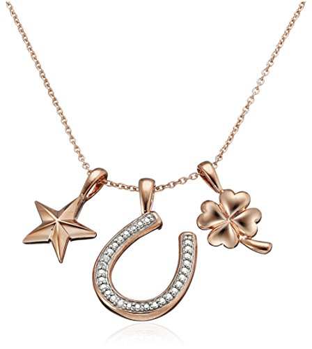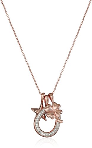 -. Title : Sterling Silver with Pink Gold Plating Diamond Pendant Necklace, 18"