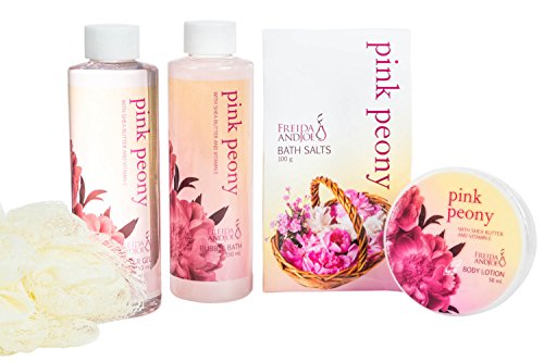 Once smelled, never forgotten, the deeply fragrant Peony is a source of healing qualities that will heal the body and mind of daily stress and tension. This aromatherapy gift set is perfect for anyone who feels wilted at the end of the day, with rejuvenating and healing properties to bring even the weariest soul back up to full bloom. Each pink peony bath and body gift set contains: shower gel, bubble bath, body lotion, bath salt, yellow puff, ribbon & tag. Enriched with Shea Butter & Vitamin E